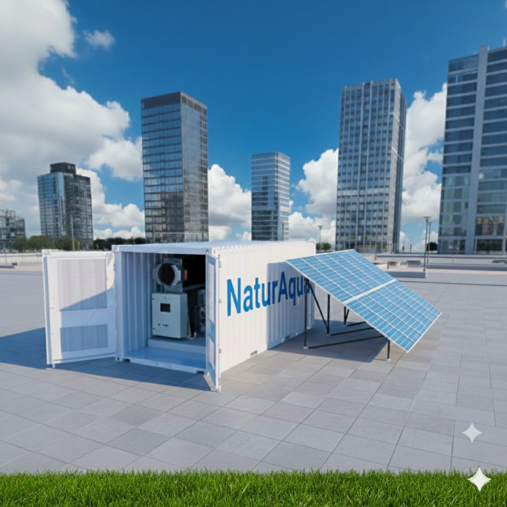 un système innovant, autonome et recyclable de purification des eaux usées qui récupère et traite les eaux grises et noires, les transformant en eau potable ou de qualité utilitaire.