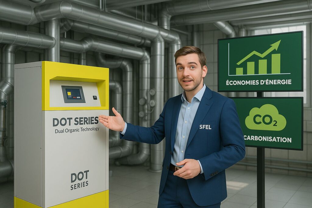SFEL FRANCE propose des systèmes comme la technologie DOT au CO₂ supercritique, qui produisent simultanément chaleur et froid avec un rendement exceptionnel (COP jusqu’à environ 7), permettant de diviser significativement les coûts énergétiques des bâtiments et installations.